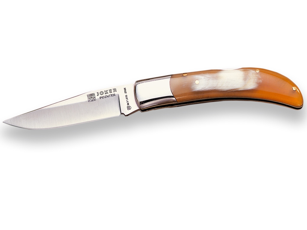 BULL HORN SCALES JOKER POINTER FOLDING POCKET KNIFE WITH LOCKBACK AND BLADE LENGTH 9 CM