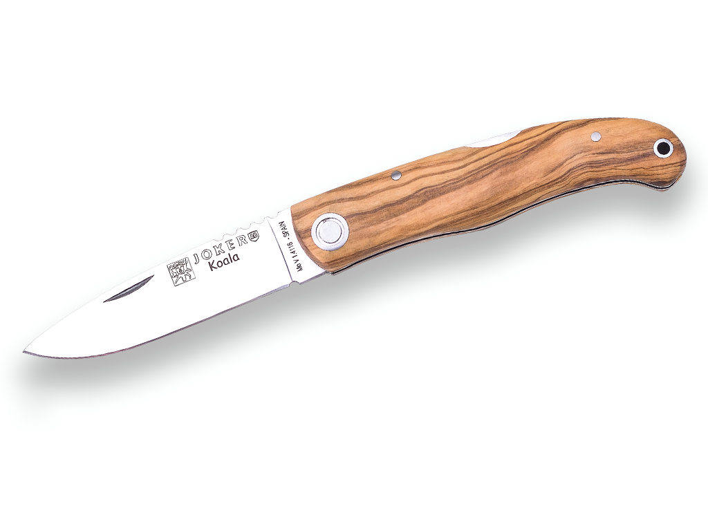 FOLDING POCKET KNIFE JOKER KOALA, STAINLESS STEEL MOVA 1.4116, OLIVE WOOD SCALES, 7 CM BLADE LENGTH, LOCK BACK.