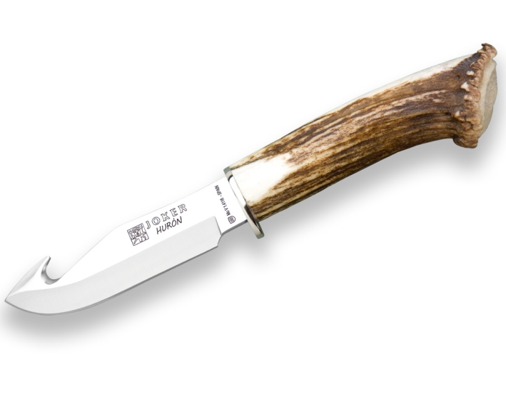 STAG HORN HANDLE, GUT HOOK 11 CM STAINLESS STEEL FIXED BLADE, JOKER HURÓN SKINNING KNIFE HURÓN