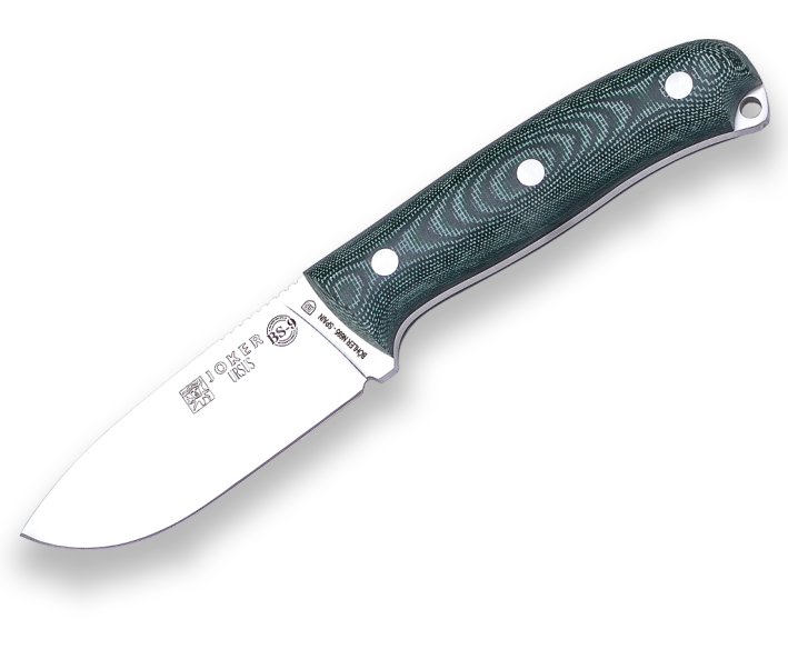 SURVIVAL AND BUSHCRAFT KNIFE JOKER BS9 URSUS. STAINLESS STEEL BÖHLER N695, MICARTA CANVAS HANDLE, BLADE LENGTH 10 CM. LEATHER S