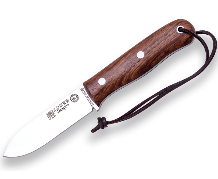 CUCHILLO BUSHCRAFT Y SUPERVIVENCIA JOKER BS9 TRAMPERO. ACERO SANDVIK 14C28N, MANGO MADERA DE NOGAL, HOJA 10 CM. CON FUNDA VAQUET