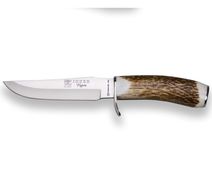 Hoja: Molibdeno Vanadio Cruceta: Inox Funda: Cuero Puño: Ciervo 14 cm - 230 gr