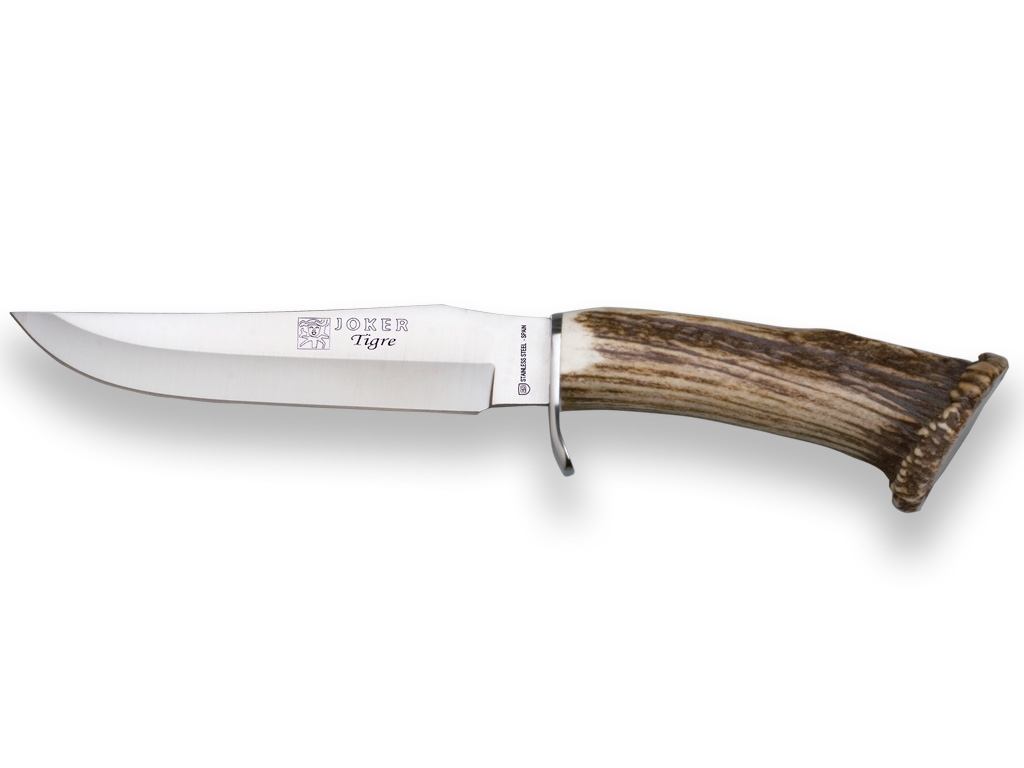 Hoja: Molibdeno Vanadio Cruceta: Inox Funda: Cuero Puño: Ciervo 17 cm - 300 gr