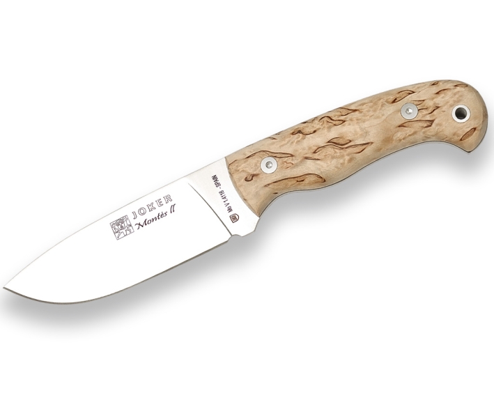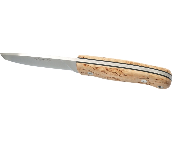 CUCHILLO DE MONTE ENTERIZO CON CACHAS DE ABEDUL RIZADO Y HOJA DE 11 CM