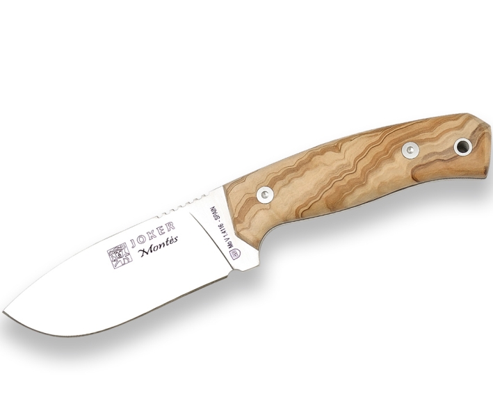 CUCHILLO DE MONTE ENTERIZO CON CACHAS EN MADERA DE OLIVO Y HOJA INOX DE 10,5 CM