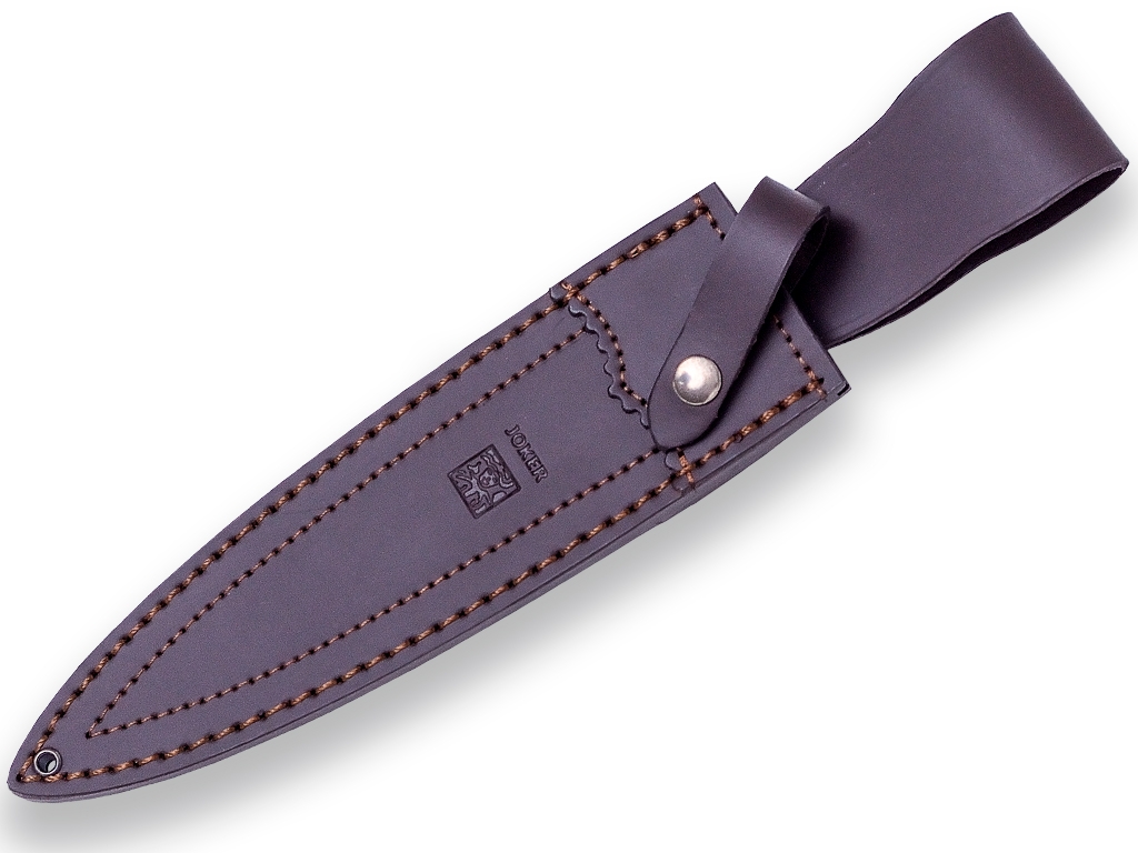 El Cuchillo de Caza Joker Colmillo ha sido fabricado bajo la Denominacion de Origen de Albacete (España). Se trata de un cuchillo deportivo perfecto para tus lances de caza, especificamente para remate. El Cuchillo de caza Joker Colmillo es de hoja de espiga fabricado en acero inoxidable Mova 1.4116 con un largo de hoja de 21,5 cm, ancho de pala de 4,5 cm y un grosor de 4,6 mm. El largo del mango es de 16 cm y está fabricado con corona de asta de ciervo. El cuchillo de remate Joker Colmillo viene acompañado de una funda de piel de primera calidad en color marrón.