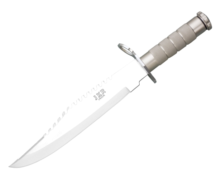 Cuchillo Supervivencia Hoja: 25 cm Puño aluminio Contiene: Brujula plomo e hilo para pesca cerillas aguja e hilo de costura piedra para afilar
