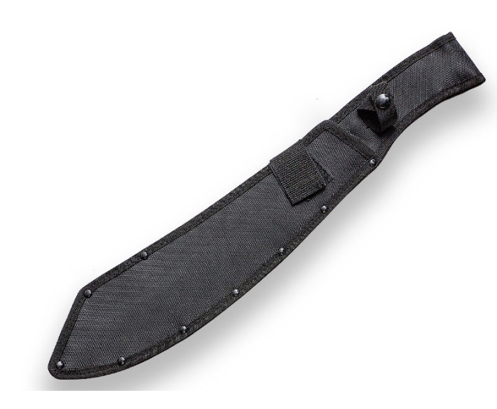 Machete de camuflaje JKR712 con mango de goma y hoja de 36,5 cm. Funda de nylon.