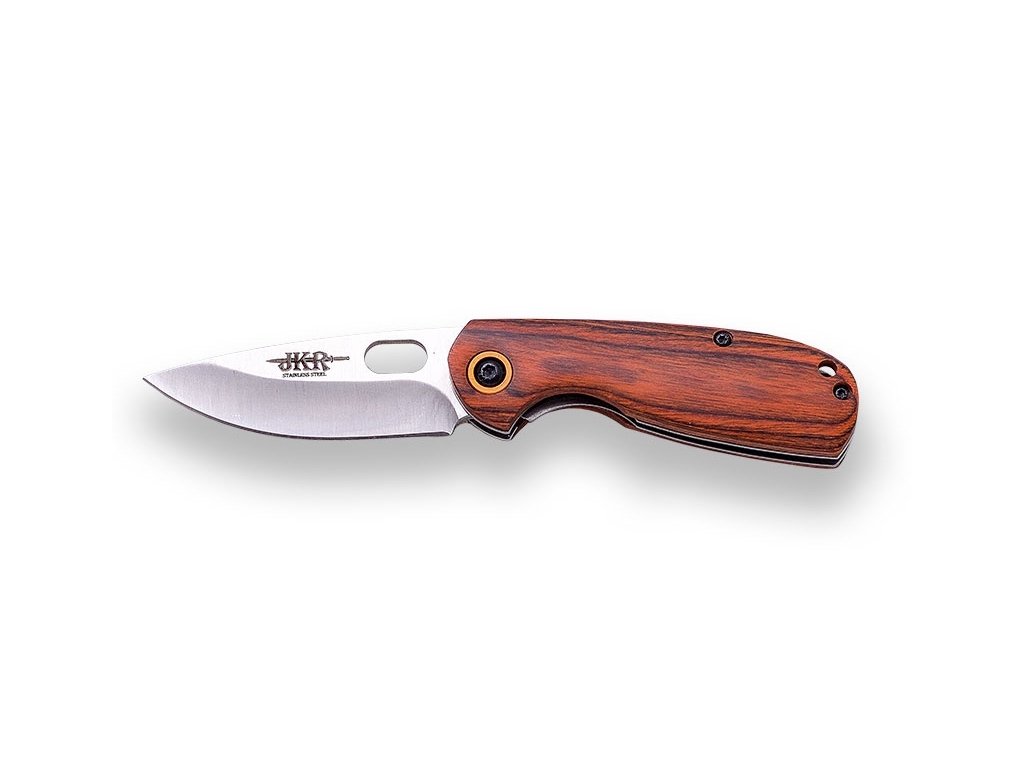 NAVAJA DEPORTIVA JKR, APERTURA MANUAL, HOJA DE ACERO INOXIDABLE 6,5 CM, MANGO MADERA PAKKAWOOD.