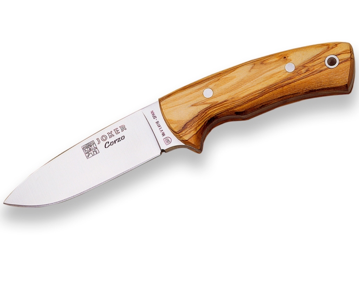 COUTEAU BUSHCRAFT JOKER CORZO AVEC MANCHE BOIS D'OLIVIER ET LONGUEUR LAME 10 CM.