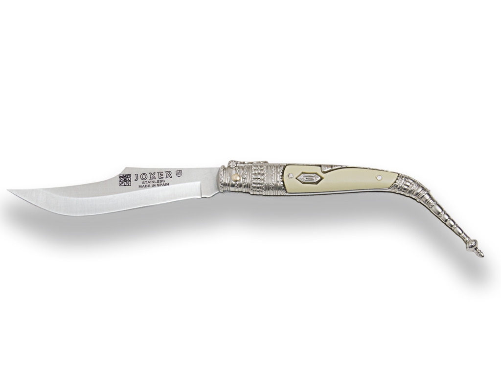 Je commence COUTEAU PLIANT JOKER BECADA, 8 CM LONGUEUR DE LAME, MANCHE DE CERF Referencia: NC153 Le couteau Joker Becada est un produit artisanal haut de gamme, conçu pour les chasseurs et les amoureux de la nature qui recherchent un outil fiable, élégant et fonctionnel. Avec sa lame en acier Sandvik 14C28N, son manche en bois de cerf et son système de verrouillage sécurisé, ce couteau allie tradition, performance et beauté naturelle dans un format... View
