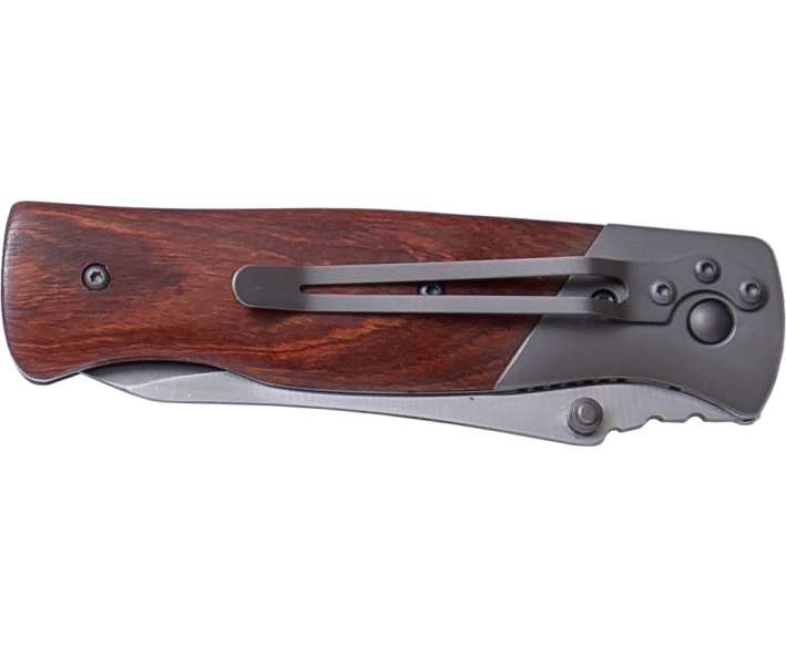Je commence COUTEAU PLIANT JKR MANCHE BOIS ROUGE LAME 9 CM DE LONG Referencia: JKR0883 Le couteau JKR de Joker est doté d'une lame en acier inoxydable de 9 cm, d'une poignée en bois rouge et d'un système de verrouillage de linerlock. Sa finition satiné et sa conception de point de chute le rendent idéal pour diverses tâches de coupe. Avec une taille totale de 20 cm et équipé de roulements, ce couteau offre une poignée confortable et une... View