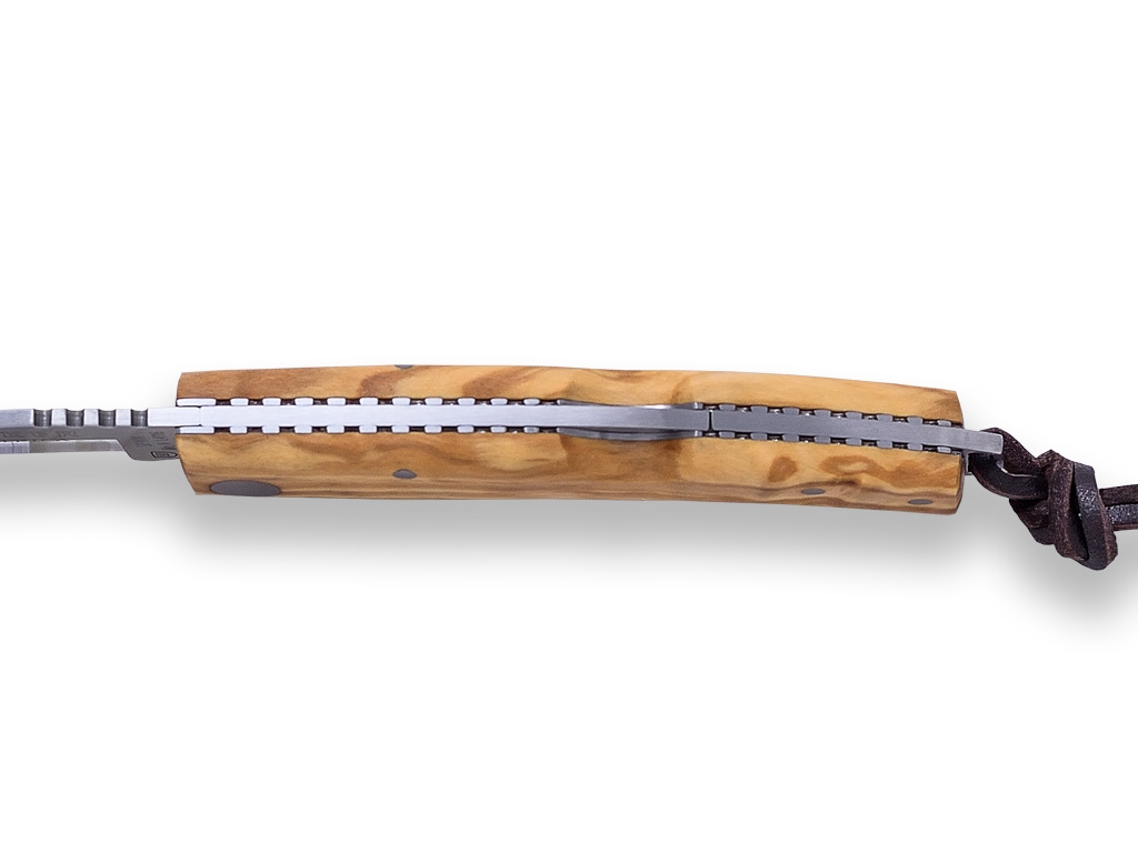 Couteau pliant Joker Ibérica NO148, manche en bois d’olivier, lame de 8 cm, acier Mova 1.4116, colonne vertébrale dentée, outil de pêche, chasse, camping et randonnée.